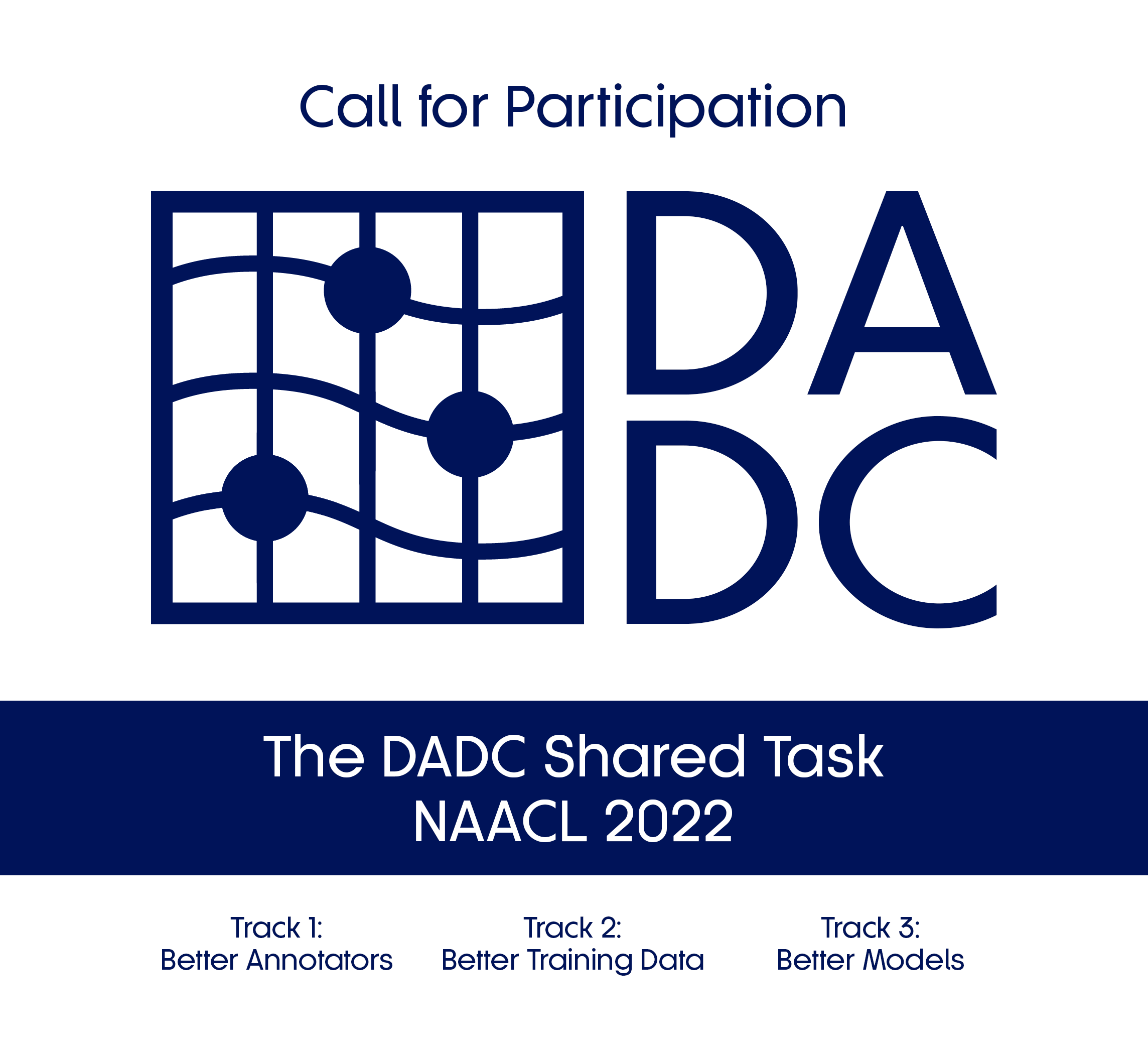 We would like to announce the launch of the Shared Task hosted by the First Workshop on Dynamic Adversarial Data Collection (DADC) co-located with NAACL 2022 in Seattle, Washington.